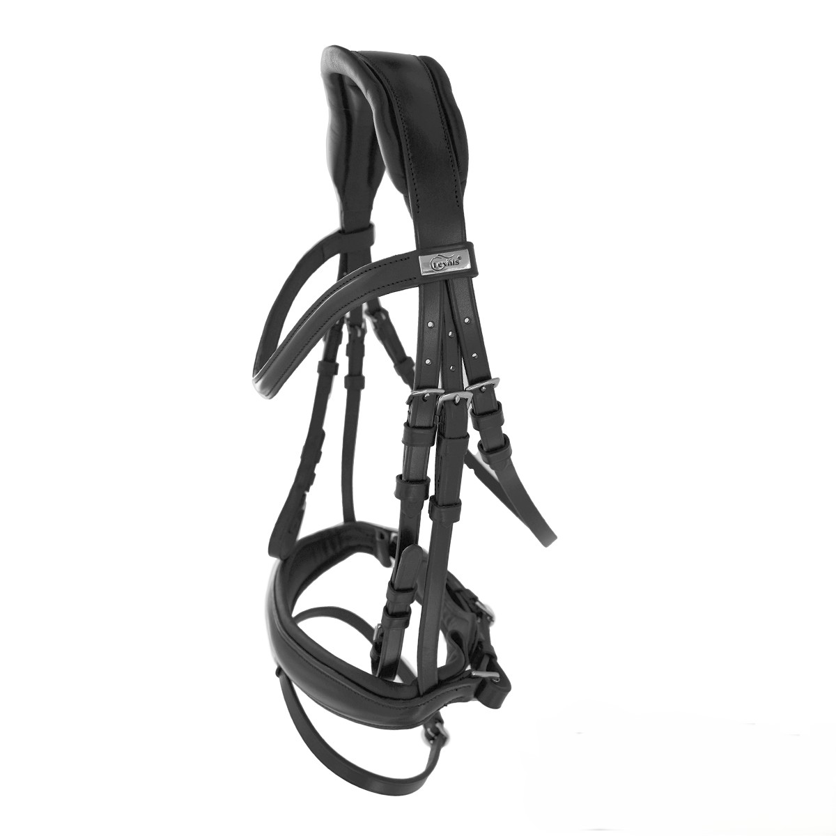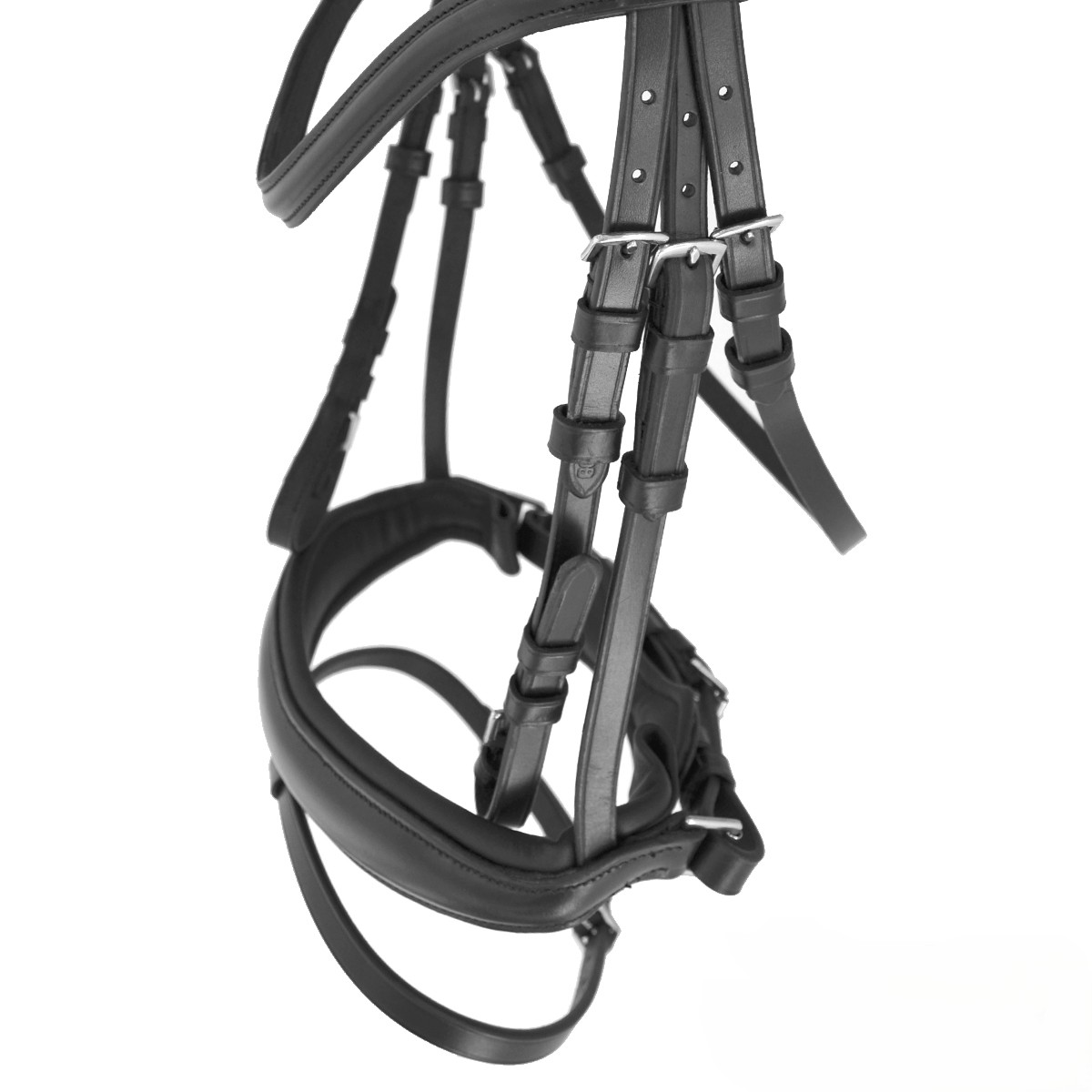 Cabezada realizada con cuero de primera calidad y todo el hebillaje de acero inoxidable.